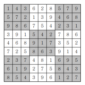 ์ฒซ ๋ฒ์งธ ์ค์ ์์ฑ๋ 9×9 ์ค๋์ฟ ๊ฐ ์ฃผ์ด์ง๋๋ค.